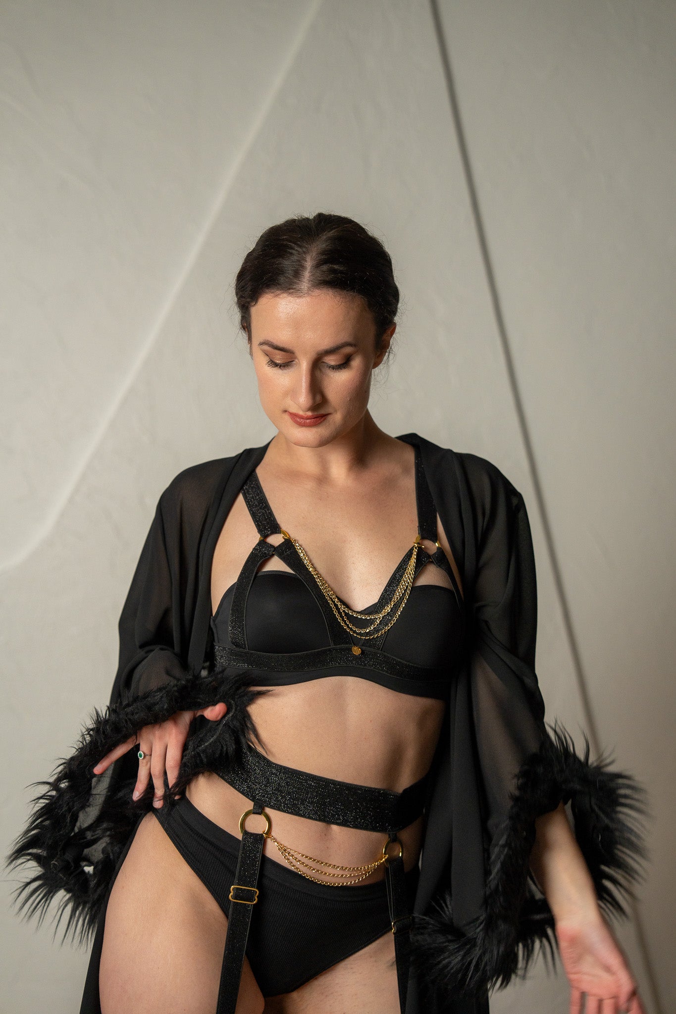 Enhance your style with Maison Libertine’s exquisite lingerie and accessories. From delicate silk satin bralettes to striking body harnesses, each piece is made with care to flatter your shape, boost your confidence, and turn heads.